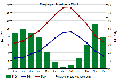Le climat de Chlef (anciennement connue sous le nom d'Orléansville) est