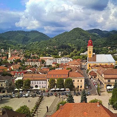 La ville est située dans le nord de la Roumanie, dans le comté de Maramures, près de la frontière avec la Hongrie et l'Ukraine, à 250 mètres d'altitude. A une courte distance se trouvent les monts Gutâi, qui font partie des Carpates.