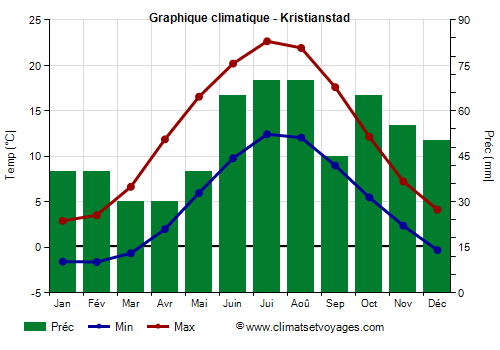 Kristianstad - Température de la mer| Mois | Temp. (°C) |